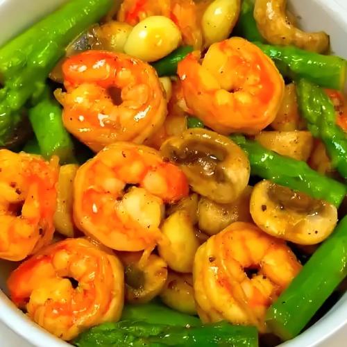蘆筍口蘑炒蝦仁