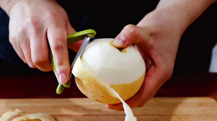 2:雪梨用鹽搓洗乾淨表皮,可以不削皮,切成小塊;