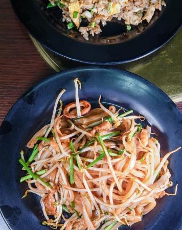 客家炒粄條,有一點像粵式,甚至是一點南洋風,有別於傳統的客家炒粄條,視覺上多了油亮,口感上多了滑嫩,又不會像粵式放久了太乾太黏,味覺上也多了一點點隱約泰式的微酸,又有著傳統客家的油香,豆芽的爽脆在口感的層次上也加分不少。