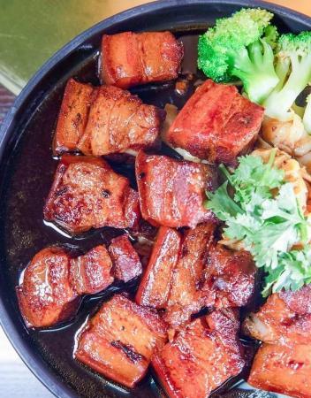 炭火控肉油油亮亮、閃閃動人,有別於一般的東坡肉、控肉,這裡用上炭火去燒,除了油甜外多了一抹象是燒肉的炭火氣息,鹹度上和微甜有了巧妙的共融,入口油滋滋的在嘴裡化開,卻意外不甜不鹹不膩口,一整個超下飯,也可以搭配刈包。據說這道香而不鹹膩的重點是用了「豆油伯」的醬油。