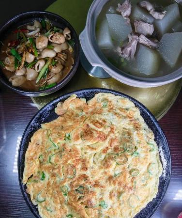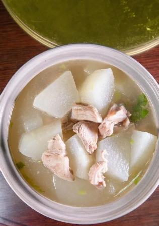 蘿蔔排骨燉湯,湯頭清爽帶著排骨肉甜,蘿蔔很入味軟綿微爆汁,排骨帶點骨邊的筋Q。