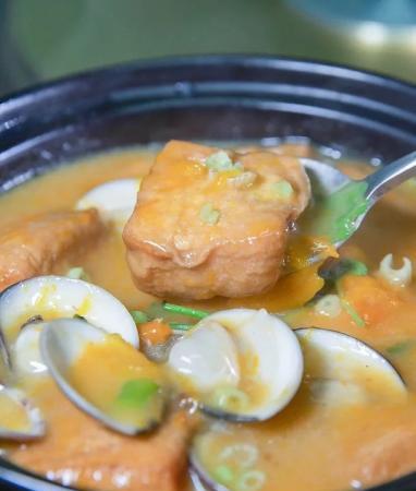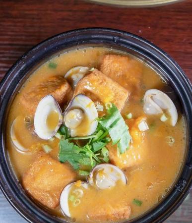 海鮮豆腐煲,融入蛤蜊的鮮、南瓜的甜、豆腐的香,每一口都嘗滿滿誠意的鮮、甜、香,帶著巴在豆腐下的滑口,又燙又想一口接一口,暖口、暖心、也暖味的好料理。