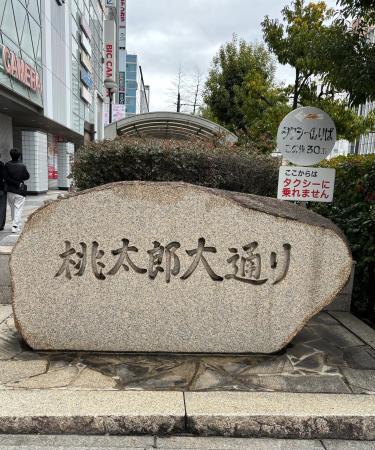 桃太郎是岡山的標籤,機場都叫“岡山桃太郎機場”。什麼是桃太郎?至今不明就裡,只知道在這常常看到桃太郎的標識,岡山出產的食品包裝上也常印有桃太郎的卡通形象,而岡山縣也被人稱作“桃太郎的故鄉”。