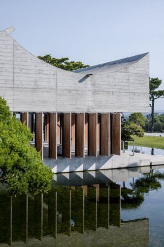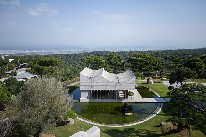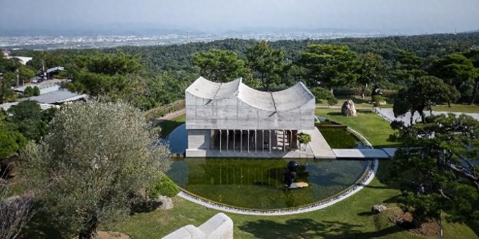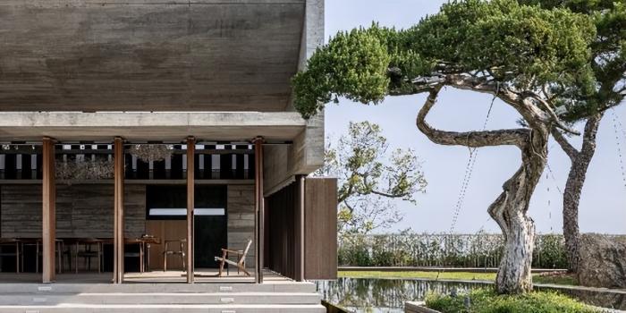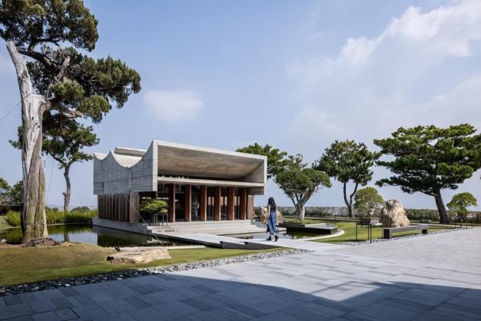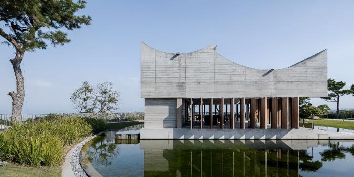 “水月茶館”位於臺灣彰化縣的一座小山頂上,其形狀是一個被冥想水池環繞的雕塑混凝土亭。Behet Bondzio Lin建築師事務所應客戶要求完成了此94.65平方米的專案,包含三個簡單的功能:茶館、洗手間和餐具室。除了佈局設計之外,建築師還受邀牢記一個基本標準:在不借助人工空調系統的情況下實現熱舒適。