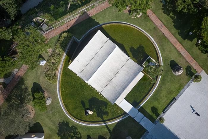 作為最後的點睛之筆,“水月茶館”亭作為島嶼矗立在橢圓形水池中間,東側高出水面60厘米,西側高出水面30厘米。他們說:“池塘的水位變化允許自然水流,有助於提高空間舒適度,增加炎熱季節流入空間的空氣的相對溼度”。