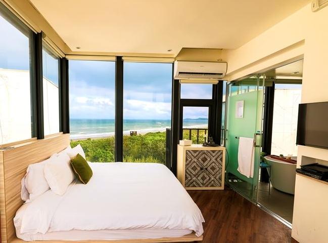 這家是我心中海景天花板!房間整面落地窗直接框住太平洋,躺在床上看日出根本皇帝待遇。老闆娘手作早餐的起司蛋餅讓我念念不忘。