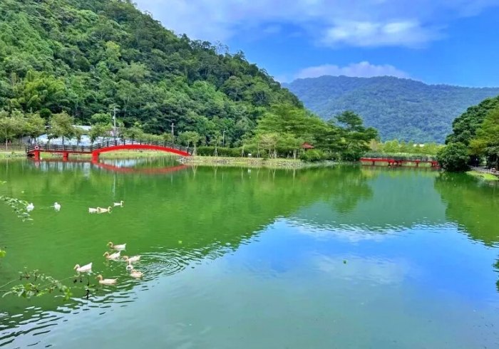 - 介紹: 因偶像劇「下一站,幸福」爆紅的寧靜小湖泊。湖光山色優美,環湖步道輕鬆好走,湖中有九曲橋和紅色小亭點綴。湖畔有幾間咖啡廳可用餐休息。適合散步放空。